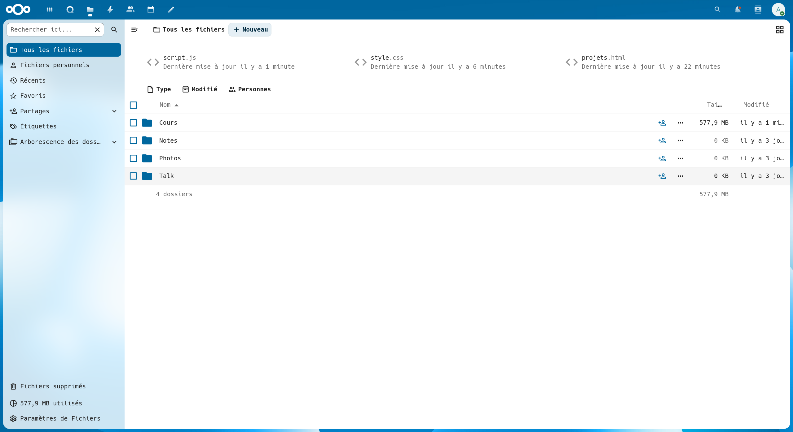 Cet outil offre également des fonctionnalités de partage de fichiers, des discussions entre utilisateurs, ainsi que des applications de calendrier et de contacts, ce qui en fait une solution complète pour la gestion de données.
